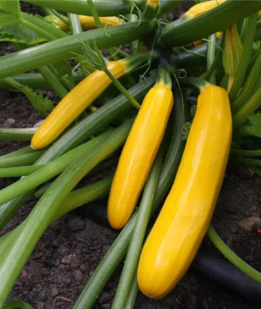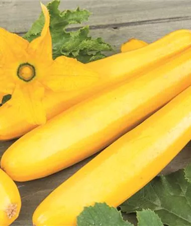 • Yellow, parthenocarpic organic courgette with attractive, shiny fruits